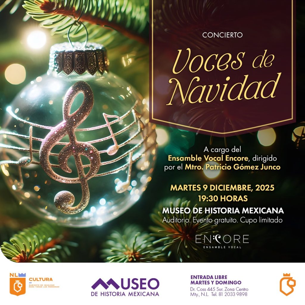 El primer gran evento musical llegará el martes 9 de diciembre a las 19:30 horas, cuando el Ensamble Vocal Encore, bajo la dirección de Patricio Gómez Junco, presente el concierto “Voces de Navidad”, una selección de temas representativos de distintas épocas y rincones del mundo, interpretados en diversos idiomas para celebrar la esencia universal de estas fiestas.